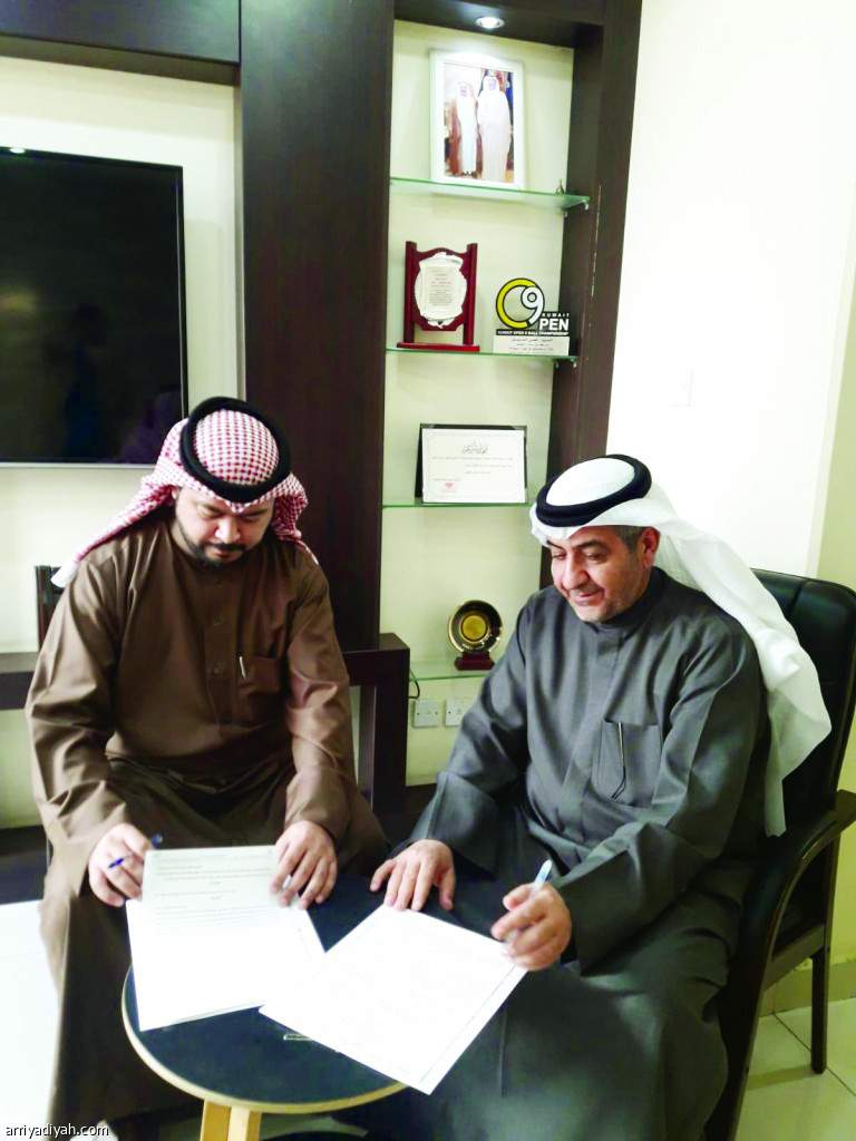 صورة التقطت أمس من توقيع عقد طاولات دايموند الأمريكية في الكويت (المركز الإعلامي ـ اتحاد البلياردو)