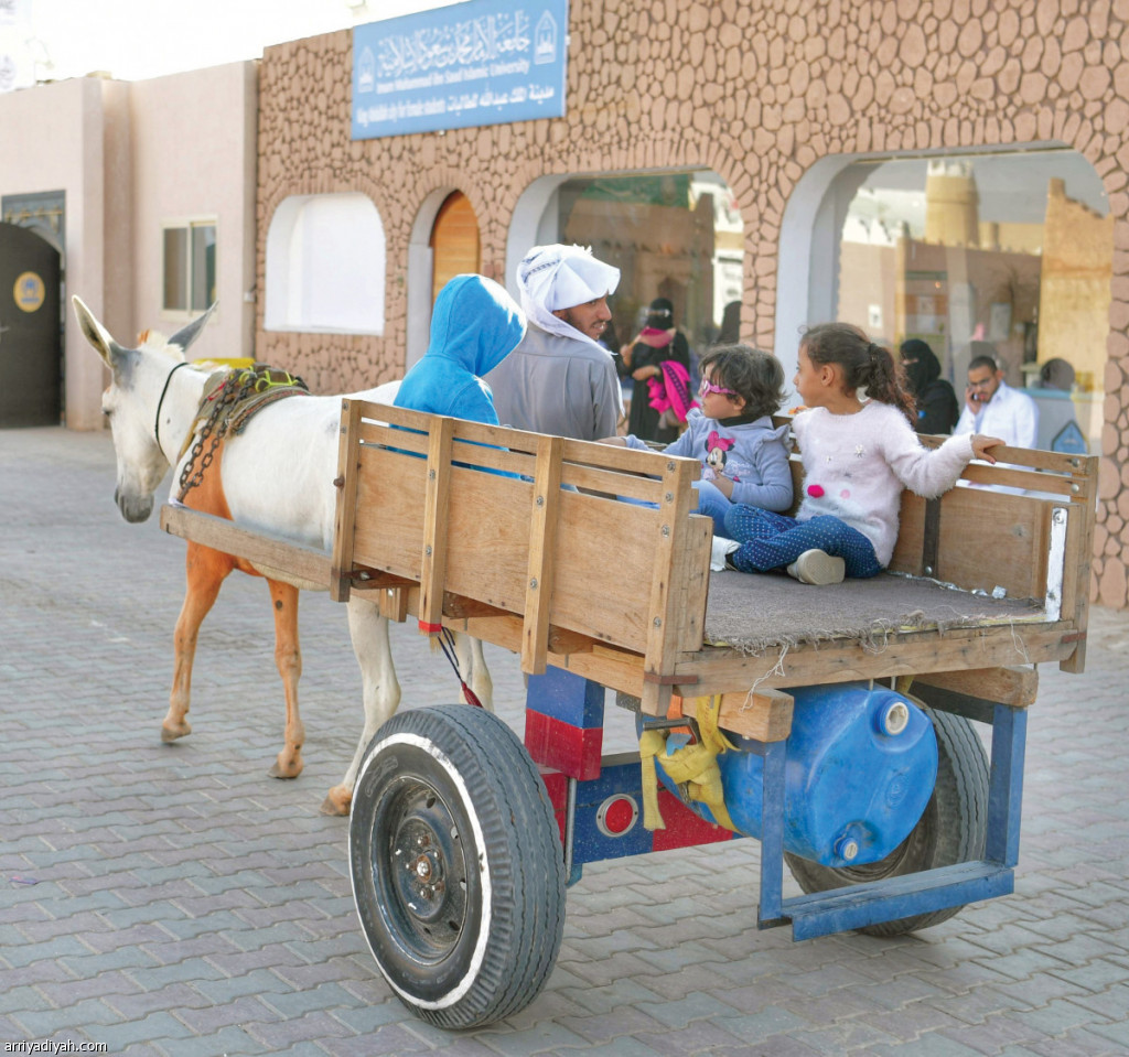 صورة التقطت أمس لأطفال على متن القاري في إحدى ساحات الجنادرية (واس)