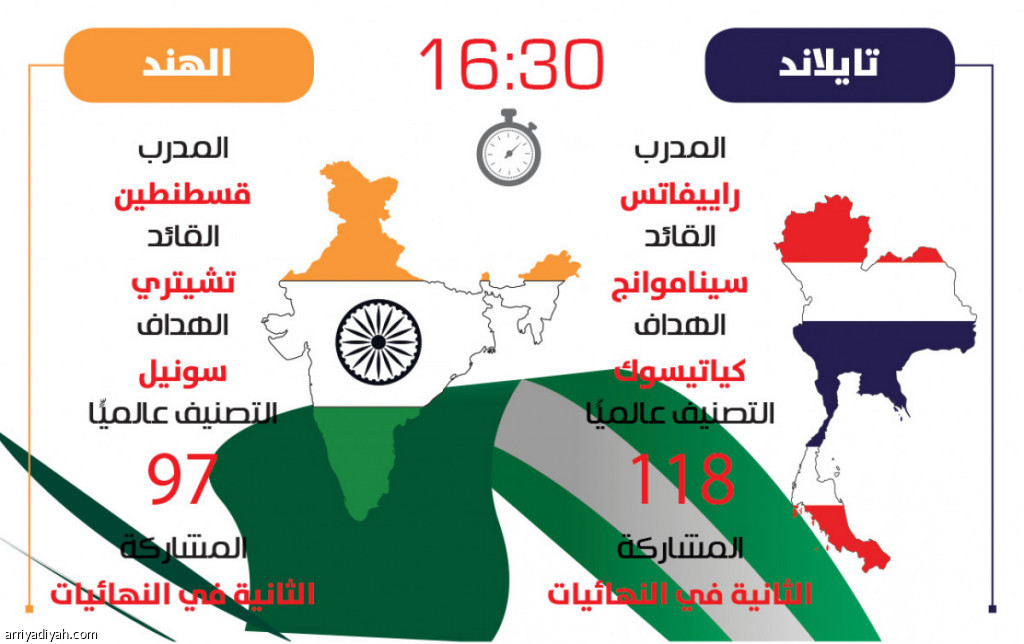 يتطلع المنتخبان التايلاندي والهندي إلى بداية قوية خلال بطولة كأس آسيا، عندما يلتقيان اليوم على ملعب "آل نهيان" في نادي الوحدة في أبو ظبي، ضمن الجولة الأولى من مباريات المجموعة الأولى في الدور الأول للبطولة. ويسعى كل منتخب إلى بداية قوية لمسيرته في البطولة، خاصة في ظل المواجهتين الصعبتين اللتين تنتظران كليهما في الجولتين التاليتين أمام منتخبي الإمارات والبحرين.