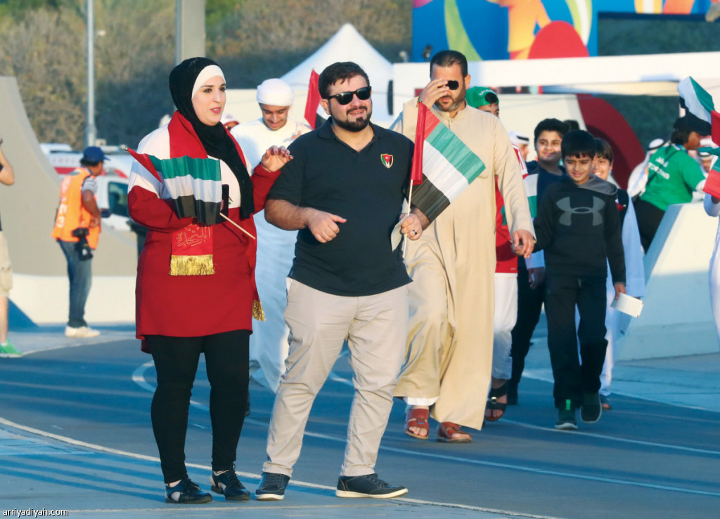 صورتان التقطتا أمس للجماهير في طريقهم إلى ملعب مدينة زايد الرياضية في أبوظبي