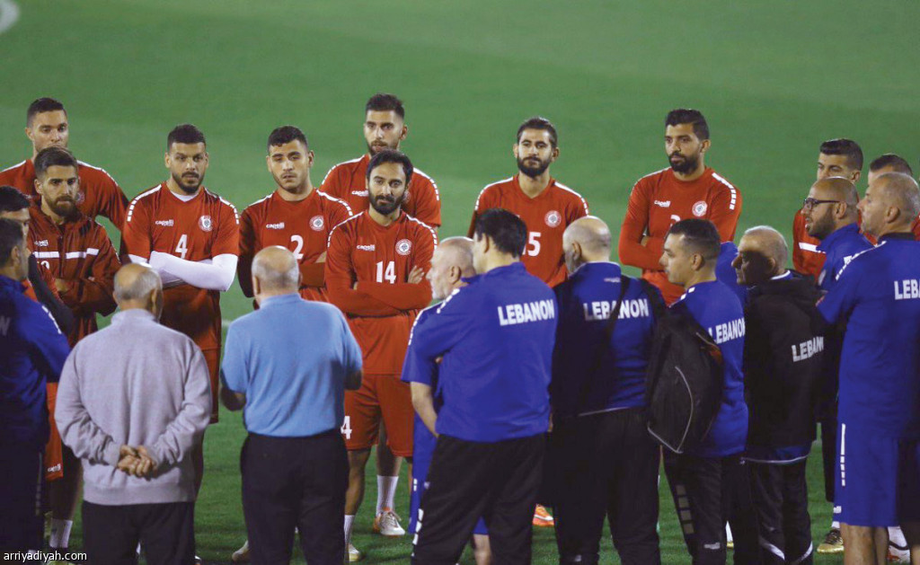 صورة التقطت أمس من اجتماع مدرب لبنان مع اللاعبين في بداية الحصة التدريبية (المركز الإعلامي ـ الاتحاد اللبناني)