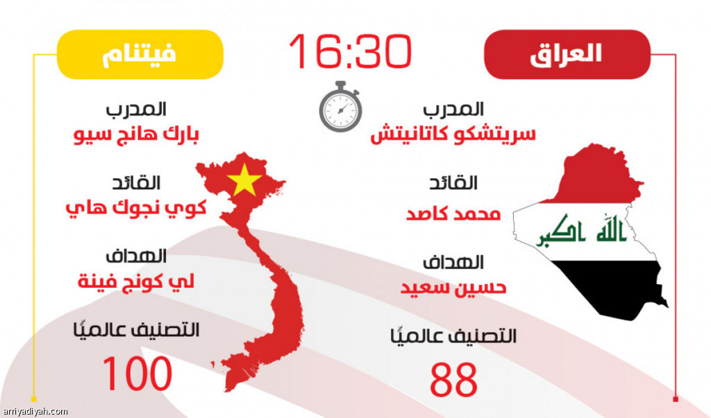 ويبحث أسود الرافدين عن ضربة بداية قوية في البطولة من خلال تحقيق فوز كبير ومطمئن على المنتخب الفيتنامي في مباراة هي الأسهل للفريق على الأقل من الناحية النظرية.
