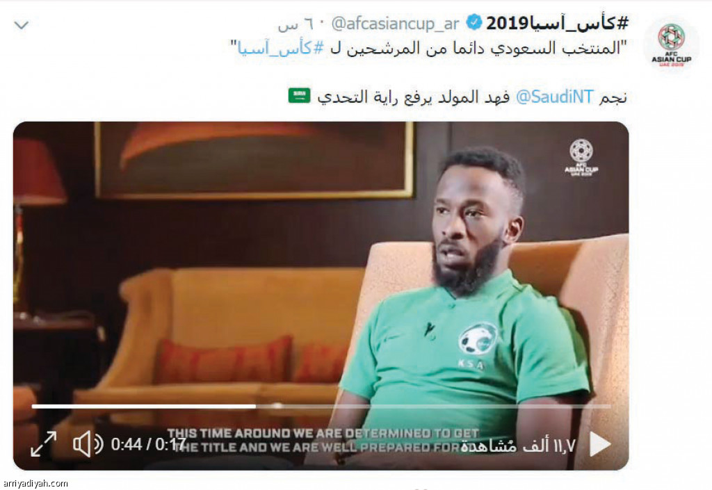 ورفع فهد المولد راية التحدي، قائلًا: "المنتخب السعودي دائماً ينافس على الكأس، وجاهزون للعودة بالبطولة وتمثيل السعودية أحسن تمثيل". وأضاف عبر صفحة كأس آسيا في "تويتر" باللغة العربية: "بغض النظر عن طموحات المنتخبات الأخرى في تحقيق البطولة، لكننا الأقوى من الجميع".