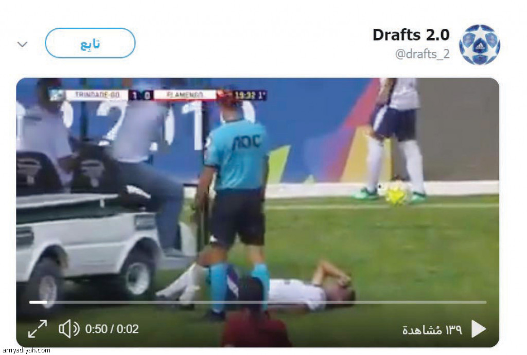 تعرض البرازيلي بيرناردو، لاعب فريق ترينداد لإصابة مزدوجة خلال مباراة فريقه ضد منافسه فلامنجو "1ـ0"، التي جمعتهما ضمن مسابقة كأس ساو باولو للشباب تحت 20 عاماً.