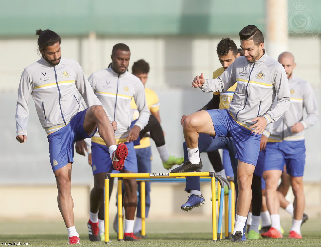 صورة التقطت أمس لبيتروس والجبرين أثناء الحصة التدريبية استعدادا لمواجهة الفيصلي غدا (المركز الإعلامي - النصر)