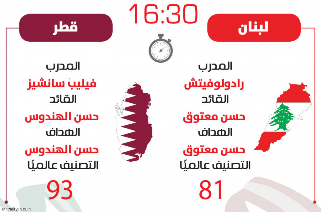 يتطلع المنتخب اللبناني، اليوم، إلى بداية جيدة في البطولة الآسيوية، عندما يلتقي نظيره القطري على ملعب هزاع بن زايد، ويدرك المنتخبان أن التفكير في التأهل إلى الدور الثاني يبدأ من هذه الجولة، في ظل الوقوع في المجموعة ذاتها مع السعودية وكوريا.
