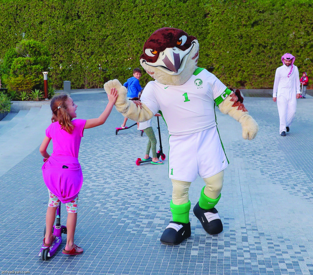 صورة التقطت أمس لطفلة مع أيقونة المنتخب السعودي (المركز الإعلامي ـ الاتحاد السعودي)