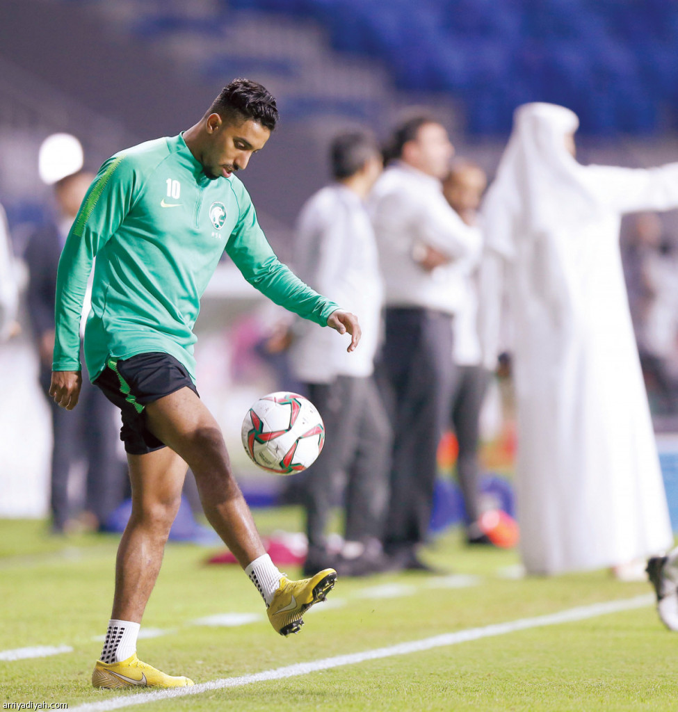 وضع الجهاز الفني المساعد للمنتخب السعودي 10 حوائط صد بشرية في أرضية الملعب لاستخدامها في التدريبات على الركلات الثابتة.