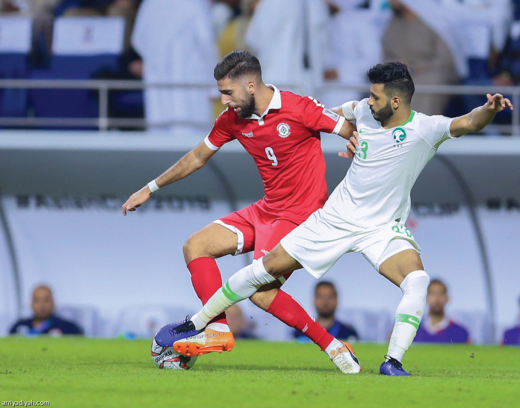 صورة التقطت أمس للفتيل يحاول انتزاع الكرة من مهاجم المنتخب اللبناني تصوير: بدر الحمد