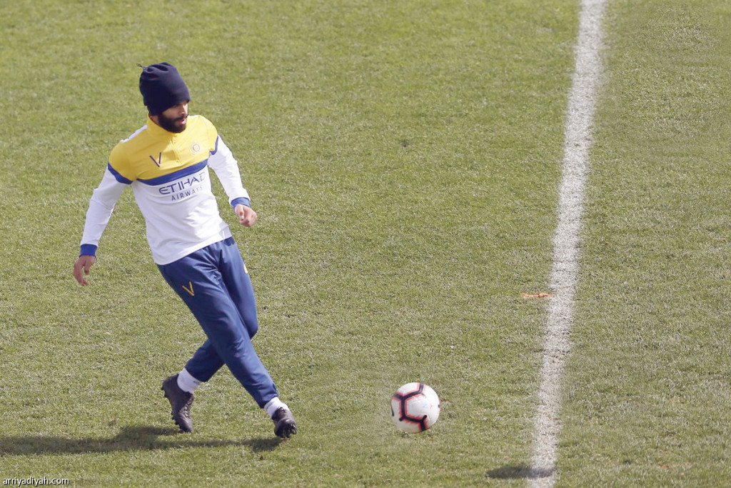 صورة التقطت أمس لأحمد الفريدي لاعب وسط فريق النصر يمرر الكرة في التدريبات الصباحية التي فرضها البرتغالي هيلدر على كافة اللاعبين (المركز الإعلامي ـ النصر)