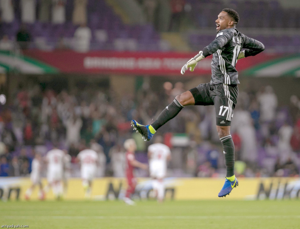 صورة التقطت أمس لخالد عيسى حارس المرمى يقفز فرحًا بعد تسجيل علي مبخوت الهدف الأول في مرمى المنتخب التايلاندي تصوير: سعد العنزي