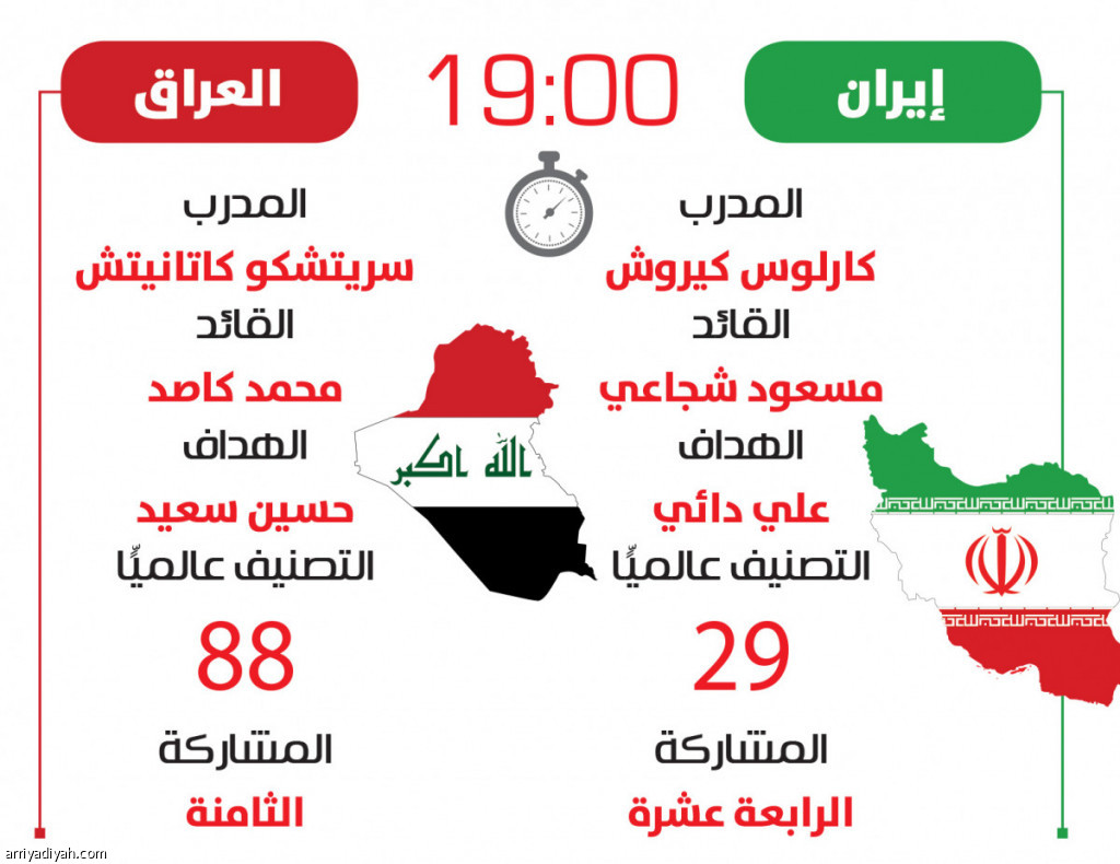 في المباراة التي ستجمع المنتخبين على ملعب آل مكتوم في دبي، يعي البرتغالي كارلوس كيروش مدرب إيران، والسلوفيني ستريشكو كاتانيتش مدرب العراق، أن المركز الأول في المجموعة قد يسهل المأمورية في دور الـ 16.