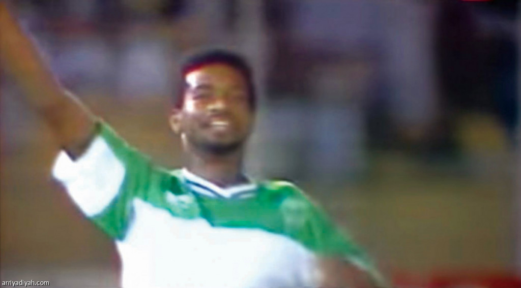 صورة التقطت لمحمد السويد يعبر عن فرحته بعد تسجيله الهدف الثاني في مرمى سوريا (أرشيفية)