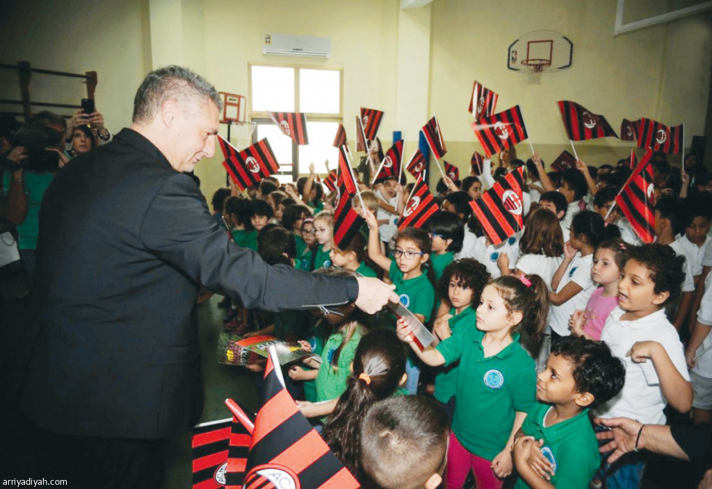 تفاعل تلاميذ المدرسة الإيطالية العالمية في جدة أمس، مع زيارة وفد الكرة الإيطالية. ووزَّع جايتانو ميتشيكي رئيس الدوري الإيطالي، ودانييلي ماسارو أسطورة ميلان، وديفيد تريزيجيه أيقونة يوفنتوس، على التلاميذ، ألبوم "بانيني"، وسط تفاعل كبير من النشء المنقسمين بين العملاقين.