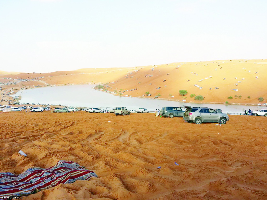 تستهوي البحيرة شباناً من محافظة المزاحمية، غرب الرياض، ومن العاصمة نفسها، التي تبعد عنها 35 كيلومترا. وتتزامن ذروة الإقبال مع هذا التوقيت من العام.