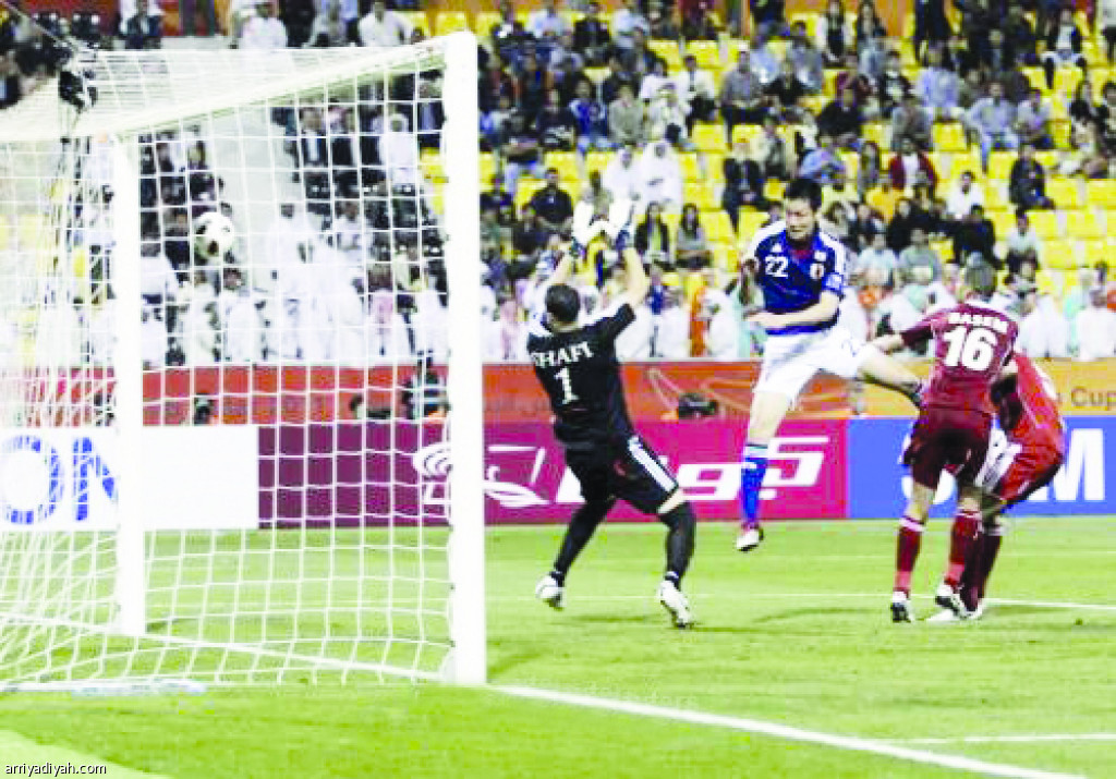 صورة التقطت ليوشيدا يسدد الكرة برأسه في المرمى الأردني (أرشيفية)