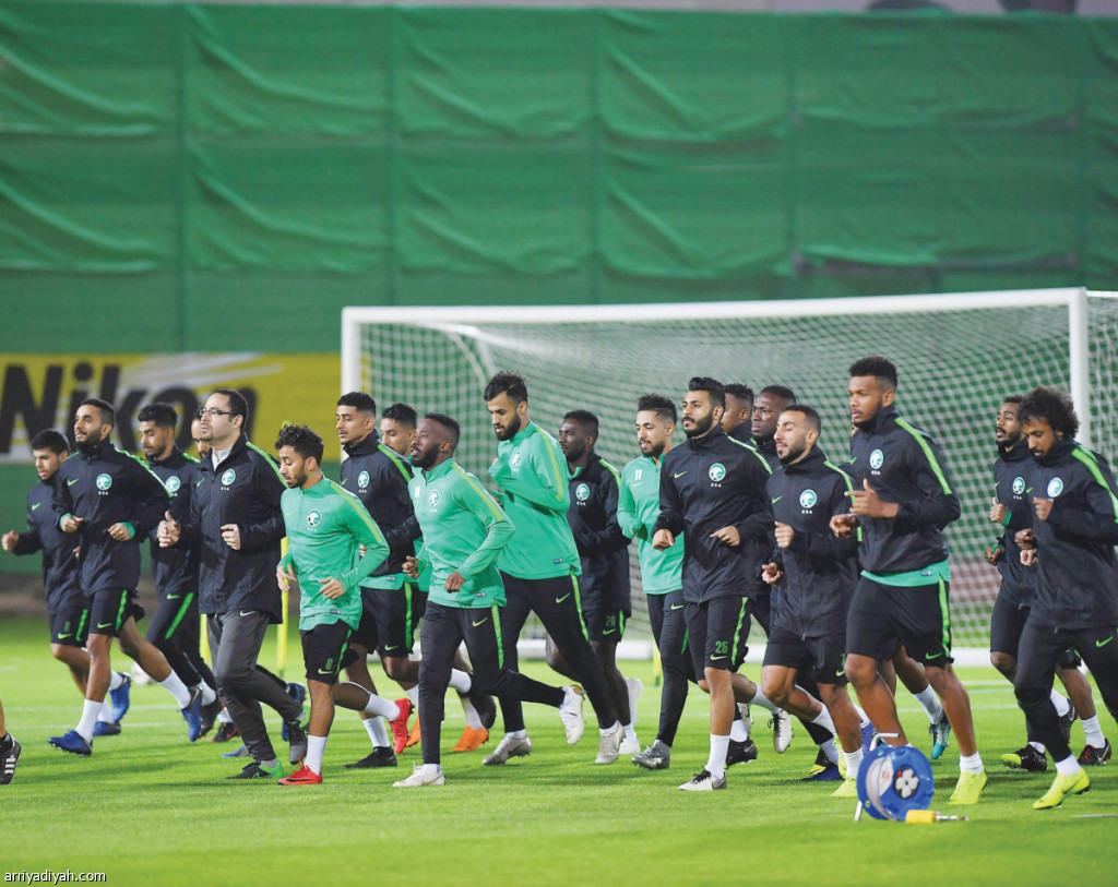 وتدرب الأخضر على ملعب الشارقة في درجة حرارة منخفضة بلغت نحو 17 درجة مئوية؛ ما جعل اللاعبين يرتدون الملابس الشتوية والقفازات اليدوية، ومع ذلك أشعلوا التمرين بالحماس والجدية.