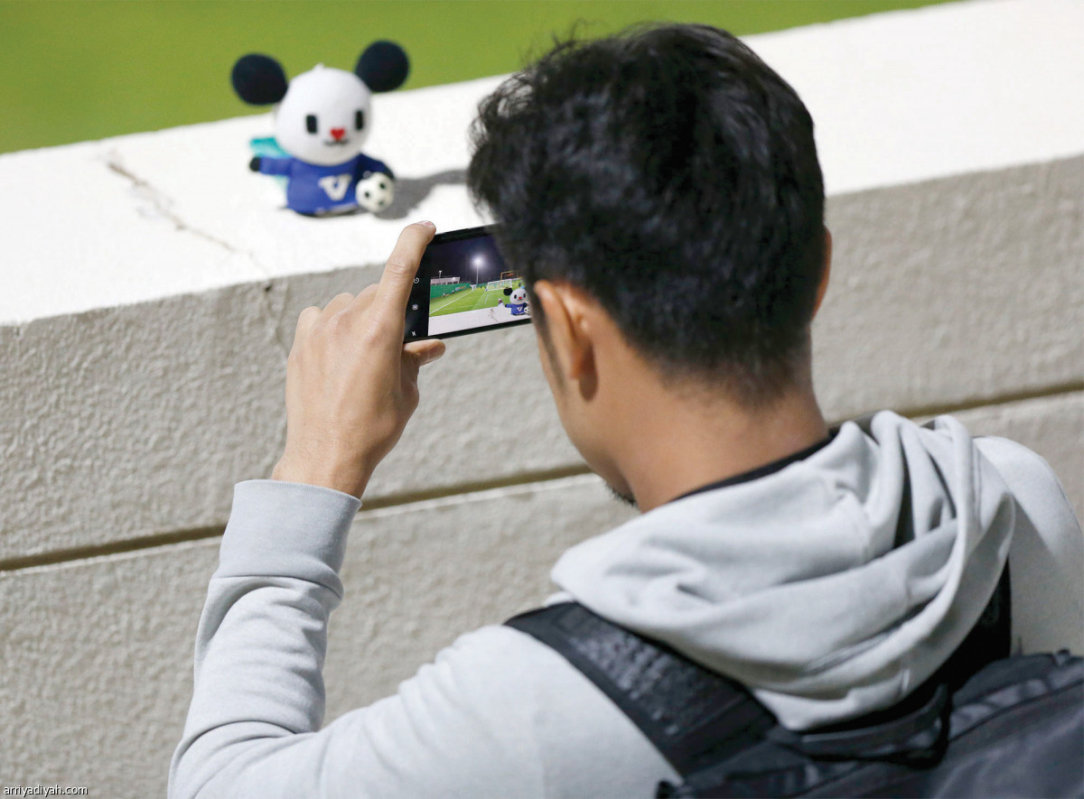 صورة التقطت لصحافي ياباني يستعد لتصوير أيقونة المنتخب الياباني تصوير: بدر الحمد