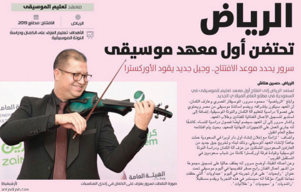 يفتتح معهد الكمان لتعليم الموسيقى عصر الثلاثاء المقبل، بحضور عدد من الشخصيات الفنية والإعلامية.ويقع مقر المعهد، الذي يعد الأول في السعودية في الدور الأول لمول مرجان السعودية الواقع في مخرج 6.