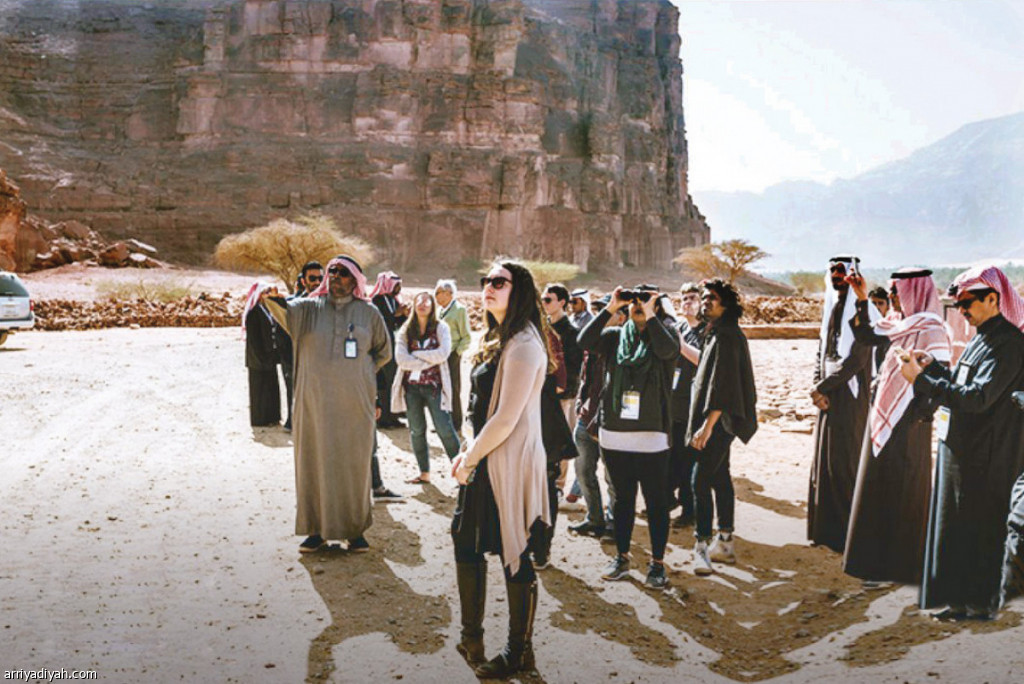 صورة التقطت لعدد من طلاب وطالبات جامعة جونز هوبكنز الأمريكية خلال جولتهم السياحية في العلا (المركز الإعلامي ـ مهرجان طنطورة)