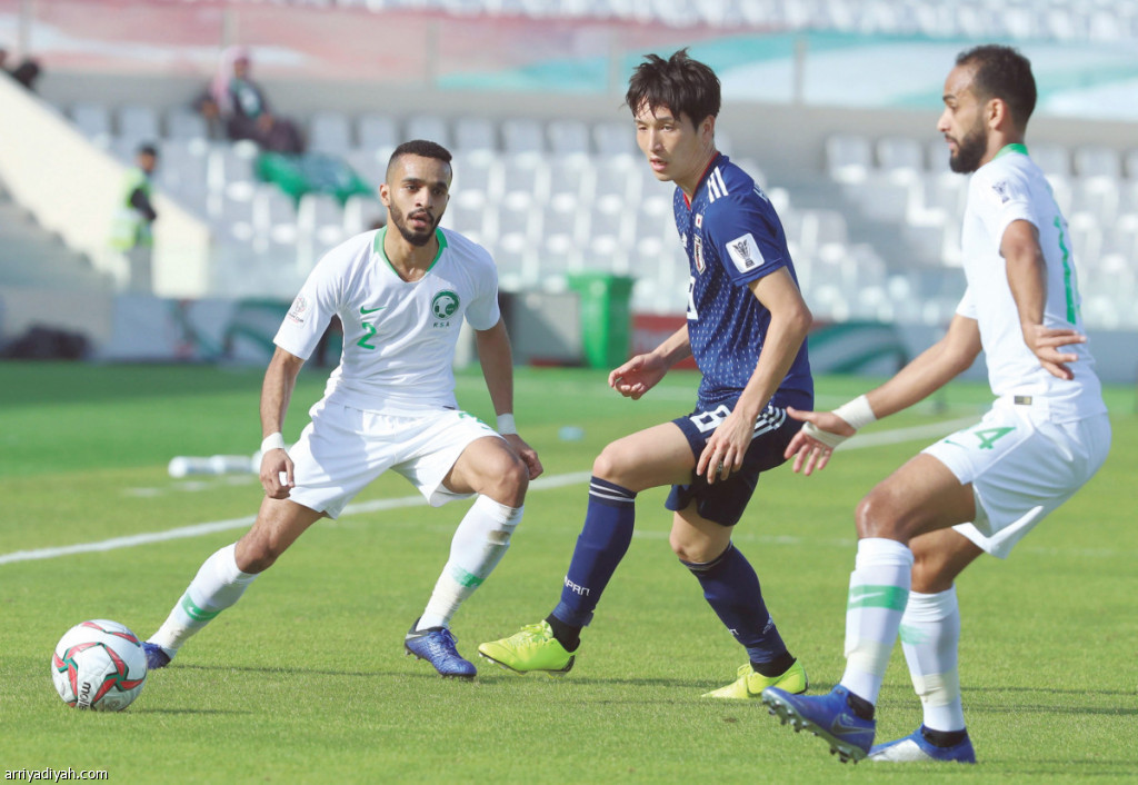 صورة التقطت للبريك وعطيف يحاصران أحد لاعبي اليابان تصوير: بشير صالح