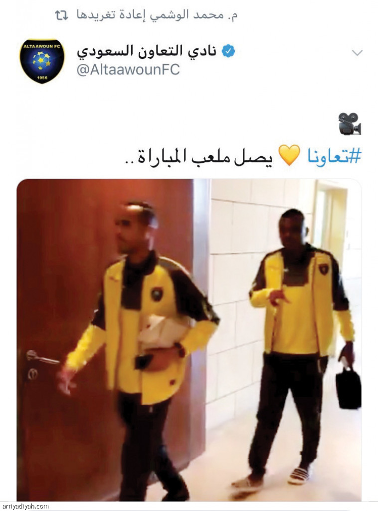 بث حساب نادي التعاون الرسمي في موقع التواصل الاجتماعي فيديو وصول الفريق إلى ملعب مدينة الملك عبدالله في بريدة، وذلك لخوض المواجهة أمام الشباب التي أقيمت أمس.