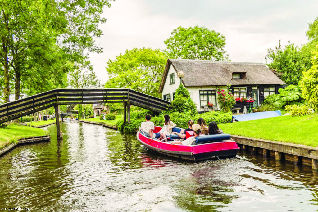 تكاد بلدة جيتهورن، الهولندية، تخلو من طرق ممهدة، إذ يعتمد سكانها على التنقل بالقوارب عبر قنوات مائية.
