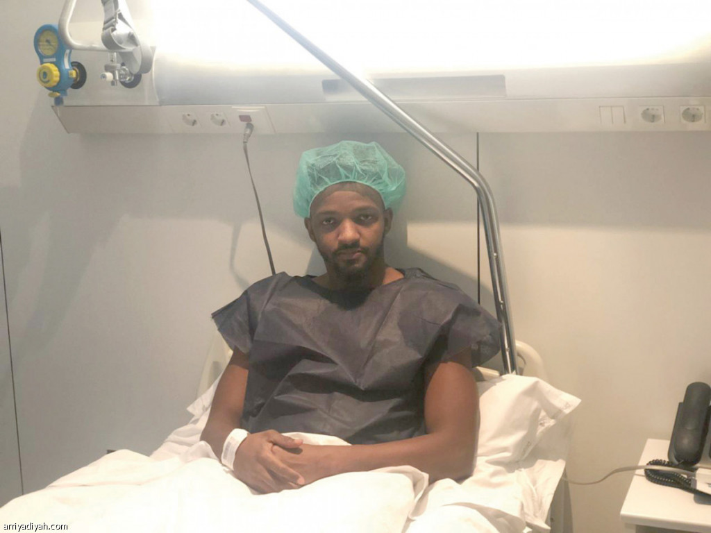 صورة التقطت أمس لتمبكتي داخل غرفة العمليات في مستشفى في إسبانيا قبيل إجراء جراحة الرباط الصليبي على يد الإسباني رامون كوجات الذي أجلها يومًا واحدًا بعدما كانت مقررة أمس الأول (خاص الرياضية)