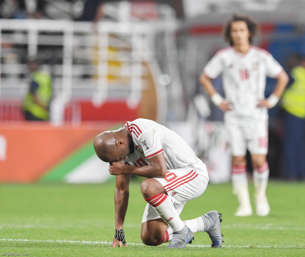 صورة التقطت أمس لإسماعيل مطر قائد منتخب الإمارات متأثرًا بعد الخروج من الآسيوية تصوير: سعد العنزي