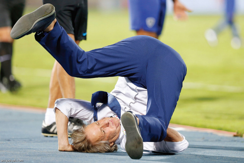 صورة التقطتها عدسة الزميل بدر الحمد مصور صحيفة "الرياضية" أثناء حركة السقوط التي تعرض لها خيسوس (أرشيفية)