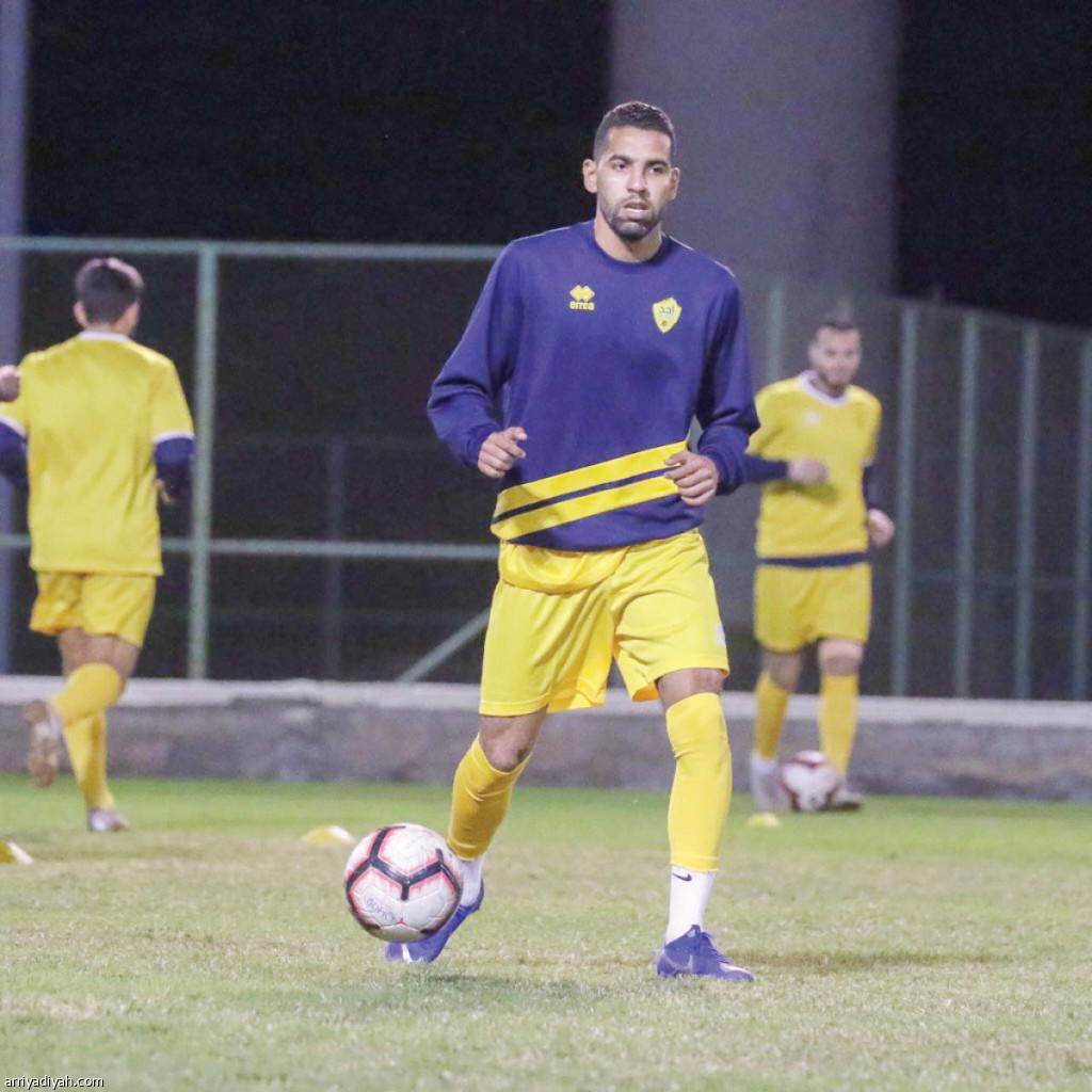 صورة التقطت أمس للمصري مؤمن زكريا أثناء خوضه الحصة التدريبية الأولى مع فريق أحد الذي انضم إليه معاراً من نادي الأهلي في بلاده (المركز الإعلامي ـ أحد)