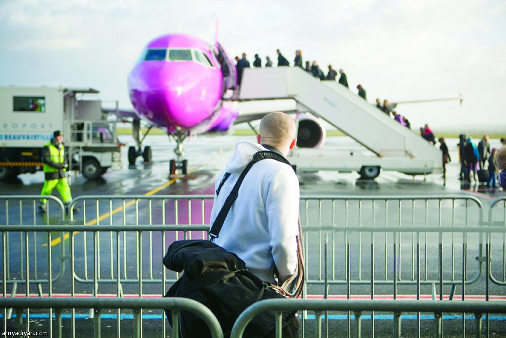 صورة التقطت لمسافر في مطار بوفيه تيه يتابع صعود ركاب إلى طائرتهم (صور جيتي)