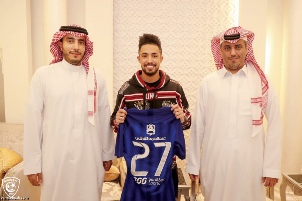 صورة التقطت أمس لباهبري يحمل قميصه الهلالي متوسطًا فهد الراشد نائب رئيس النادي وزياد العمير المساعد التنفيذي للأمير الوليد بن طلال (المركز الإعلامي ـ الهلال)