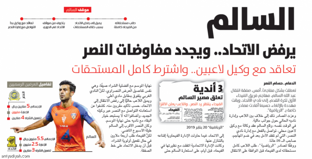 كان نادي الاتحاد نافس النصر على اللاعب، على مدى الأسبوعين الماضيين. وبعدما اتفق الفيحاء مع الاتحاد في 20 يناير، فضّل اللاعب الانتقال إلى النصر،