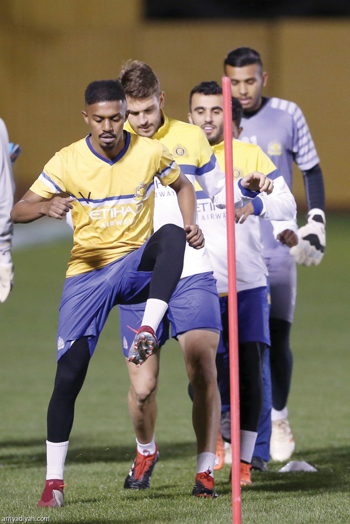صورة التقطت أمس لإبراهيم غالب لاعب النصر يتقدم زملاءه خلال تمارين اللياقة.. ويظهر خلفه البرازيلي برونو وحمد المنصور وزيد البواردي حارس المرمى تصوير: عبد العزيز النومان