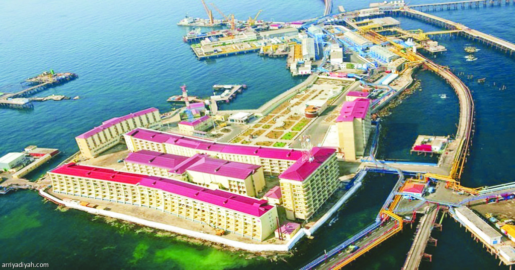 صورة التقطت لمنازل وفنادق ومنشآت صناعية في نيفت ديسلاري الأذربيجانية(أرشيفية)