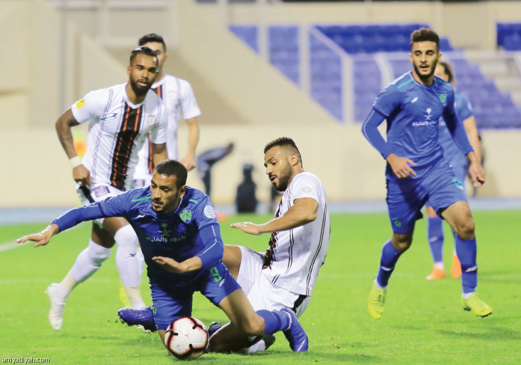 صورة التقطت أمس لمحمد سالم لاعب الشباب وحمد الجهيم لاعب الفتح يتنافسان للحصول على الكرة تصوير: محمد الدويسان