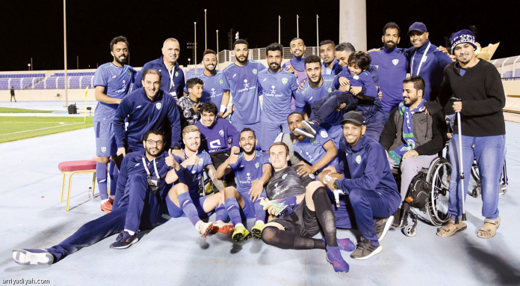 صورة التقطت أمس للاعبي الفتح وفتحي الجبال مدربهم عقب نهاية المباراة