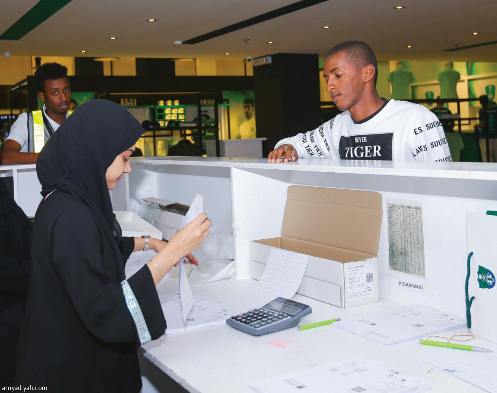صورة التقطت أمس لمشجع أهلاوي يشتري تذكرة مباراة فريقه أمام النصر من متجر النادي الأهلي تصوير: وهبان خبتي