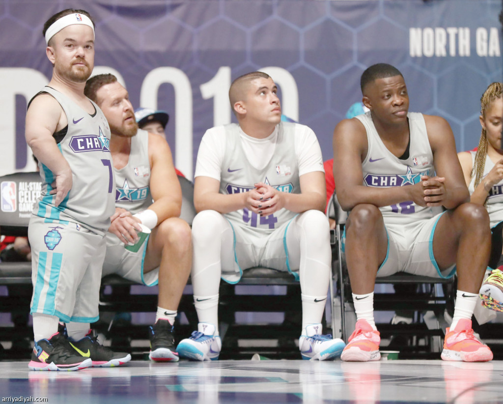 صورة التقطت أمس للأمريكي براد ويليامز نجم الكوميديا يقف بالقرب من مقاعد البدلاء خلال مشاركته في المباراة الاستعراضية التي جمعت نجوم دوري السلة الأمريكية والمشاهير وذلك على قاعة كولوزيوم في مدينة بوجانجليز في تشالورت في ولاية نورث كارولاينا (الفرنسية)