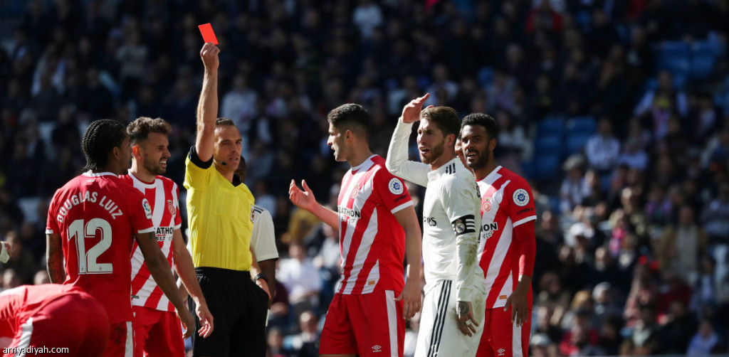 واصل سيرجيو راموس قائد ريال مدريد التأكيد على سمعته كلاعب مشاغب في كرة القدم الإسبانية بعدما تلقى البطاقة الحمراء رقم 25 مع النادي خلال الهزيمة 2-1 أمام جيرونا.