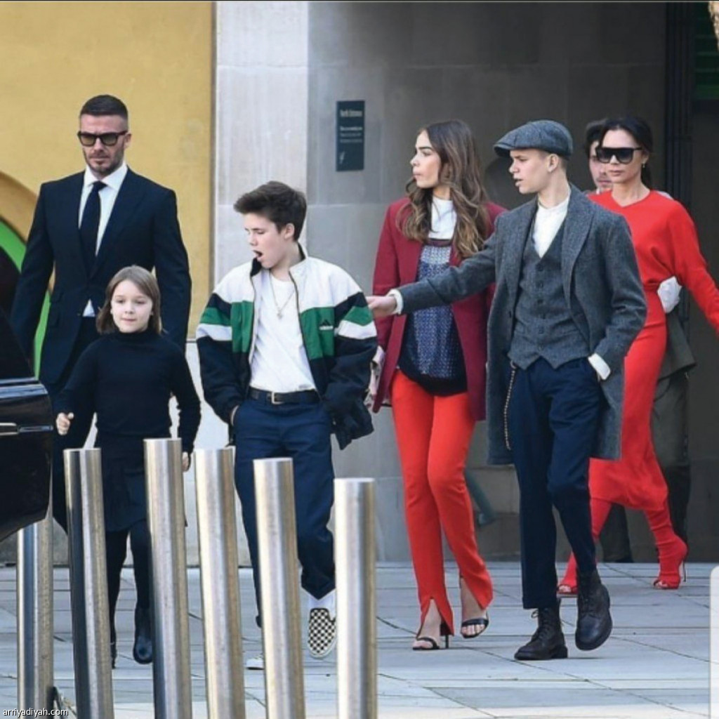صورة التقطت لفيكتوريا وزوجها بيكهام وأطفالها في مقر الحفل (الفرنسية)