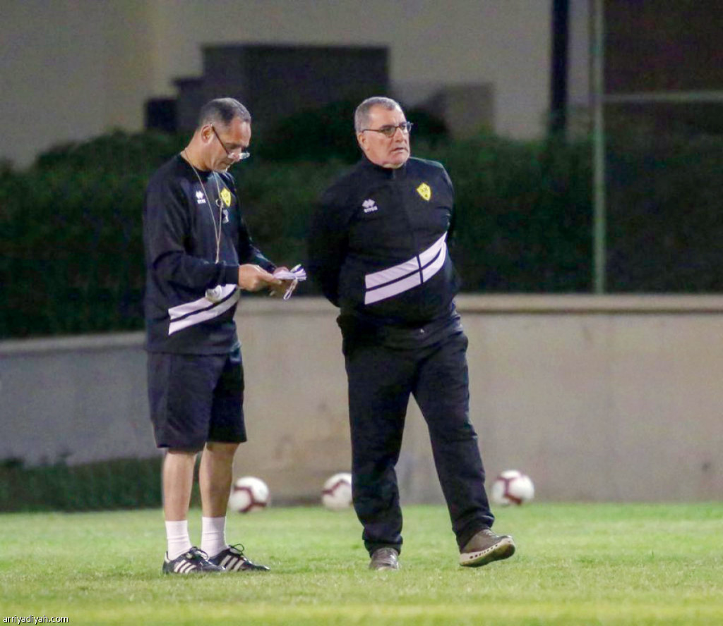 صورة التقطت أمس للتونسي عمار السويح مدرب أحد يراقب اللاعبين خلال حصة تدريبية تحضيرًا لمواجهة الوحدة الجمعة المقبل (المركز الإعلامي ـ أحد)