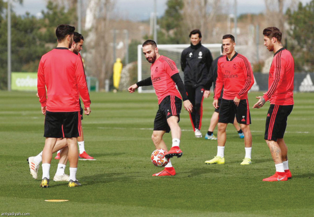 صورة التقطت أمس من تدريبات ريال مدريد الأخيرة استعدادًا للقاء أياكس أمستردام في إياب دور الـ 16 من دوري أبطال أوروبا على ملعب سنتياجو برنابيو وانتهى الذهاب بنتيجة "2ـ1" لريال مدريد.. ويظهر كارفاخال وسط كل من راموس وفاسكيز وأسينسيو وناتشو لاعبي ريال مدريد (المركز الإعلامي ـ ريال مدريد)