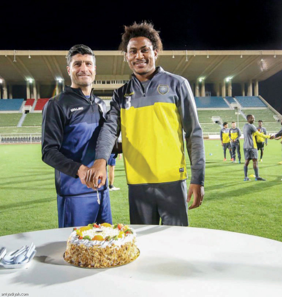 حصد البرتغالي بيدرو إيمانويل، مدرب فريق التعاون الأول لكرة القدم، جائزة أفضل مدرب في الجولة الـ 22 من دوري كأس محمد بن سلمان للمحترفين، للمرة الثالثة في الموسم فيما حصل الكاميروني لياندر تاوامبا مهاجم الفريق على جائزة أفضل لاعب للمرة الثانية.. وفي الصورة التي التقطت أمس يظهر بيدرو ولياندر يشرعان في تقطيع تورتة الاحتفال على ملعب التدريب(المركز الإعلامي ـ التعاون)