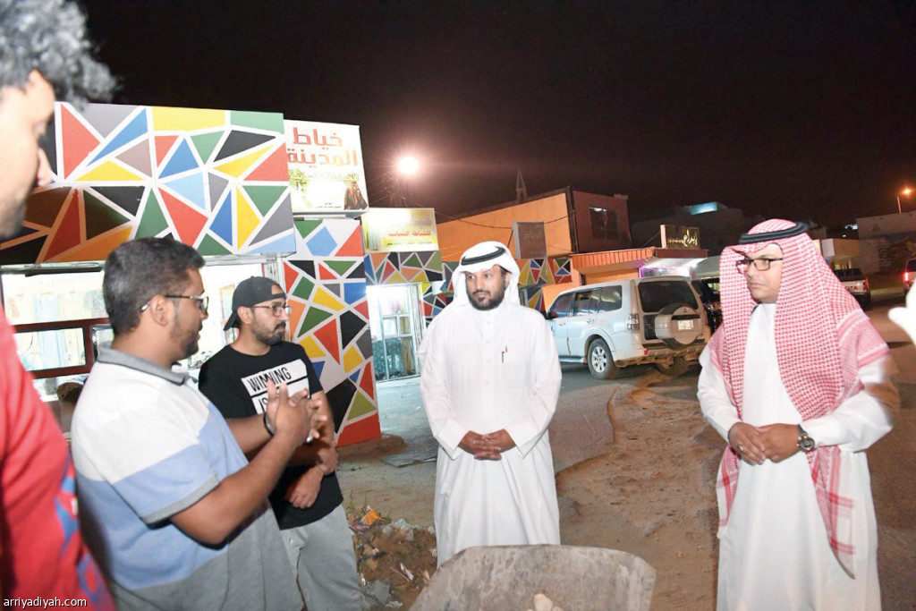 صورة التقطت أمس لصالح القحطاني محافظ الدرب يتفقد عمل الفنانين في العشوائيات (واس)