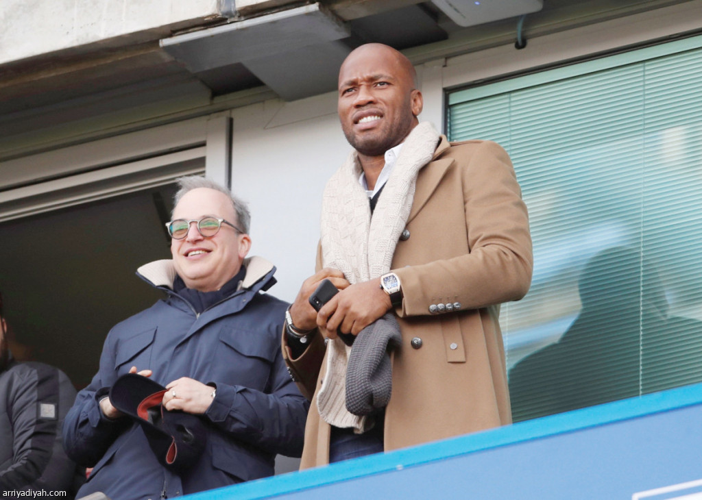 صورة التقطت أمس للعاجي ديدييه دروجبا مهاجم تشيلسي السابق أثناء حضوره في مدرجات ملعب ستامفورد بريدج في لندن العاصمة الإنجليزية لمتابعة مباراة الفريق أمام وولفرهامبتون ضمن الجولة الـ 30 من الدوري الإنجليزي الممتاز (رويترز)