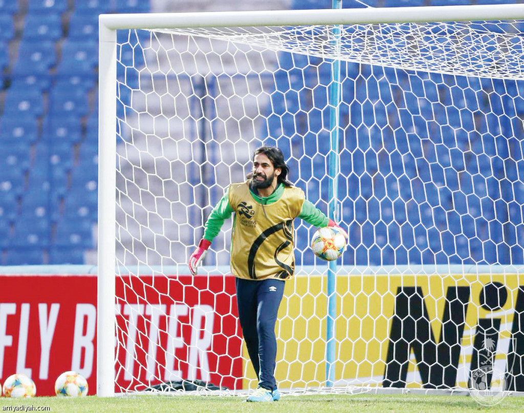 صورة التقطت أمس لحسين عبد الغني قائد فريق الأهلي الأول لكرة القدم يتحوَّل إلى حارس مرمى في تدريبات فريقه تحضيرًا للقاء باختاكور اليوم في دوري أبطال آسيا (المركز الإعلامي ـ الأهلي)