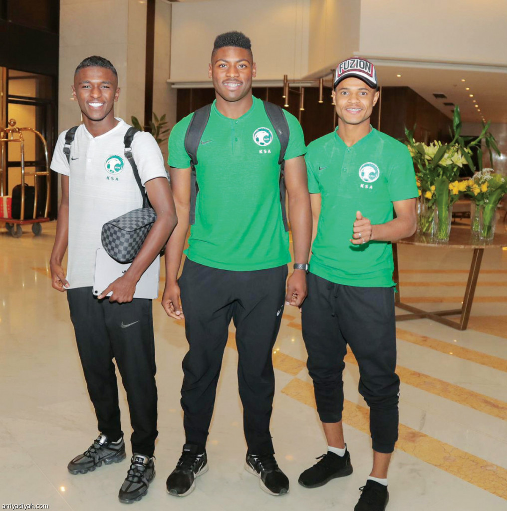 صورة التقطت أمس داخل فندق ماريوت المطار في الرياض مع بدء تجمع لاعبي المنتخب السعودي لكرة القدم تحت 20 عامًا بقيادة خالد العطوي لبدء المعسكر الإعدادي الثاني لمونديال الشباب في بولندا.. ويطلق المنتخب تدريباته اليوم في الرياض فيما يغادر الثلاثاء إلى إسبانيا.. ومن اليمين يظهر اللاعبون علي مجرشي ونواف الغامدي وفرج الغشيان (المركز الإعلامي ـ منتخب الشباب)