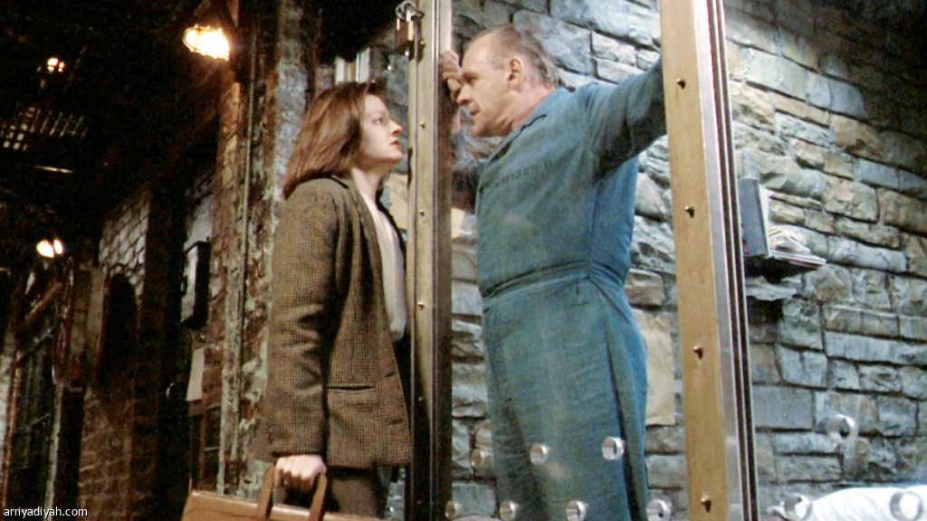 صورة التقطت لهوبكنز وفوستر من أحد مشاهد فيلم صمت الحملان (أرشيفية)